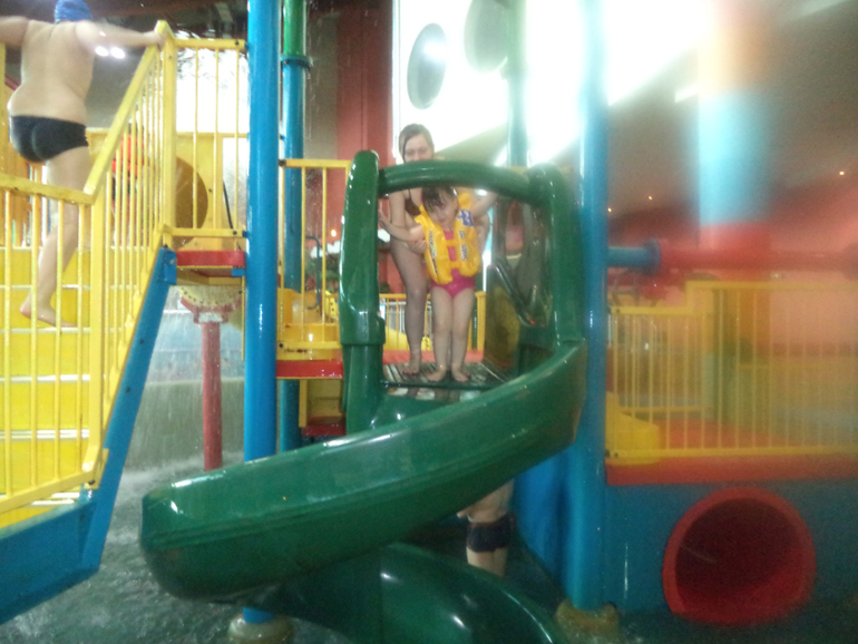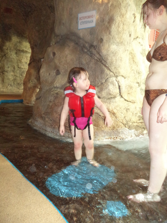 Затем поехали в аквапарк.. В этом году Элина совсем иначе восприняла воду.. Она была в диком восторге от волнового бассейна и детская зона ее совсем не интересовала.