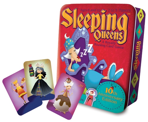 Доброе утро, друзья! Мы с вами постоянно пополняем наши коллекции настольных игр, покупая, а иногда выигрывая игры в конкурсах или викторинах. И всё это для того, чтобы разнообразить семейный досуг, научить детей чему-то новому. Да и просто нам интересно всё, что связано с настольными играми. Наверняка и детям интересно, над чем ломают головы их мамы, когда вся семья уже видит третий сон. А давайте дадим возможность детям самим выиграть приз? Какой? Конечно же настольную игру, даже хорошо вам знакомую, но всё же не совсем обычную. Это Спящие королевы - юбилейный выпуск с дополнительными карточками королев и королей!