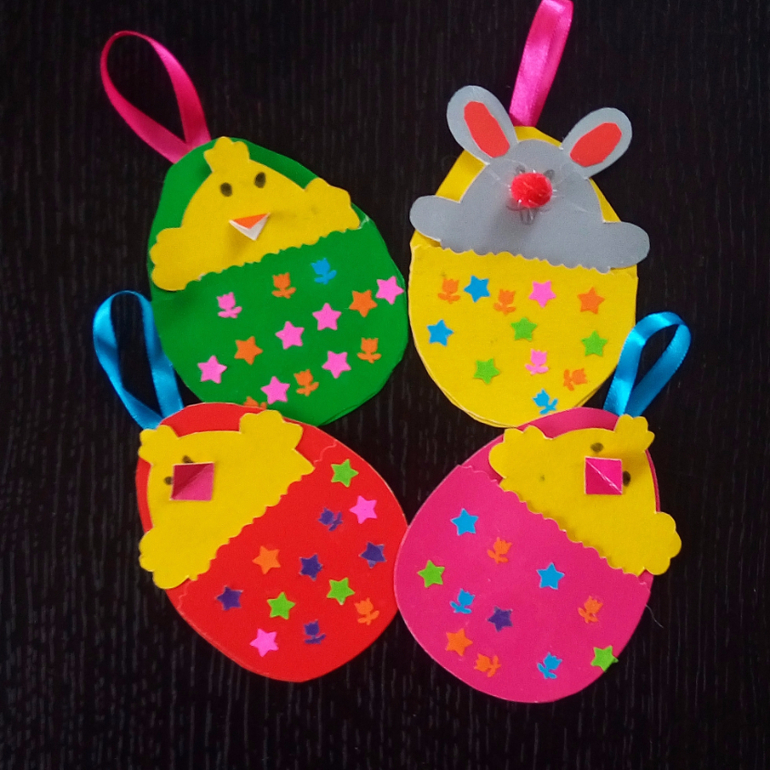 Вчера вечером украшали окна и делали пасхальные открытки.