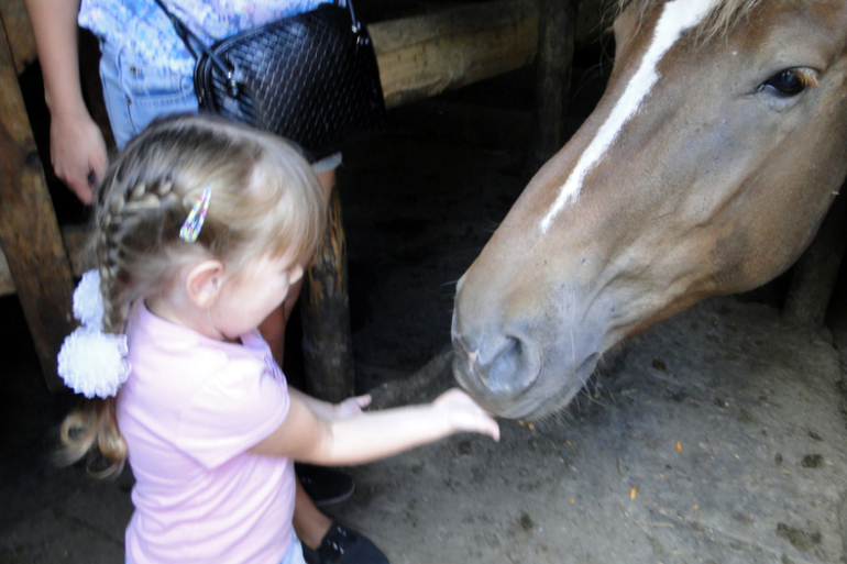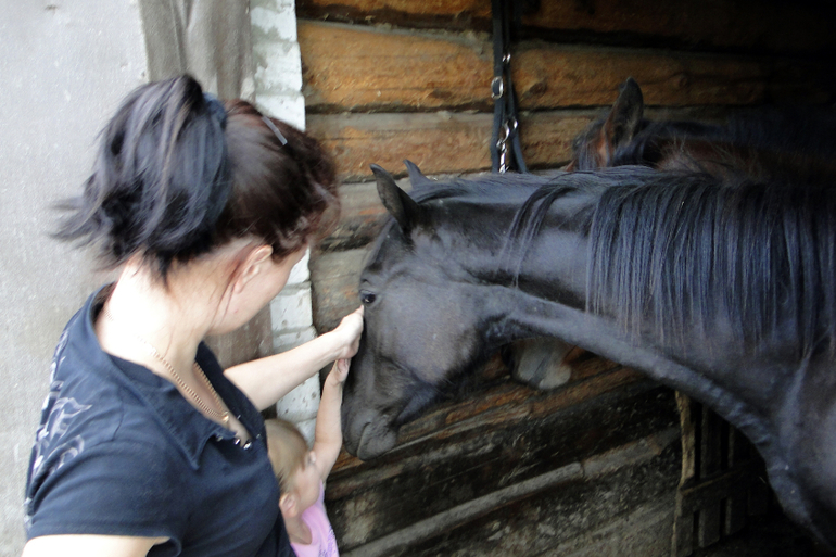 Вот уже вторые выходные мы ездим в гости к лошадкам. На прошлой неделе из-за жары прокатиться у нас не получилось, а на этой все удалось) И покормили, и погладили и накатались вдоволь...Самая взрослая лошадь Кира на день поселка была "конем Ильи Муромца", что в принципе и неудивительно, она оооочень большая и мощная. И такая же сластена, как Иришка. Как сказала хозяйка, Кира может даже по карманам пролезть в поисках сахара)