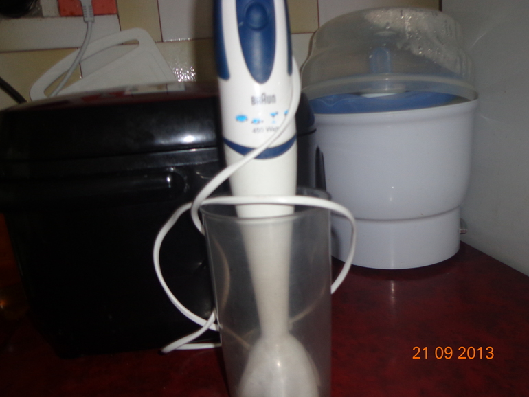 У меня тоже Браун, отлично перемалывает. Если очень густое пюре, можно немного детской водички добавить или бульон на котором варились/готовились на пару овощи. Я только им делаю.