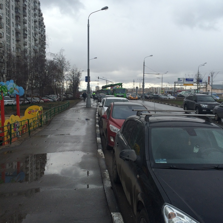 Когда вернулась (в 12.30 примерно), то увидела такую картину (моя машинка красная). Я успела ))))