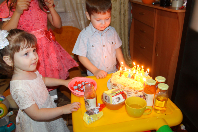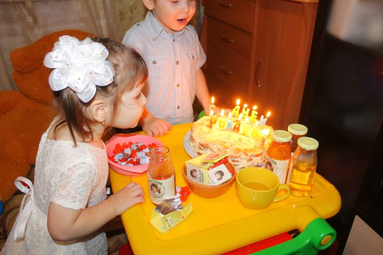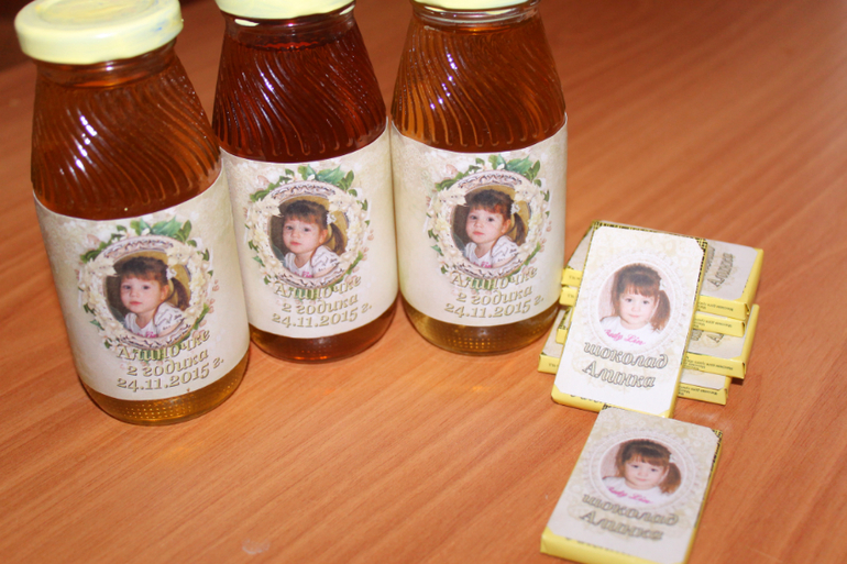 Поздравляю с двухлетием! Красивое нежное оформление! Украшения сами делали?) Сок-шоколад-отличная идея!)