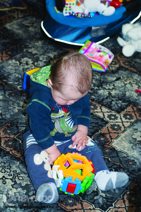 Этот месяц у нас получился "книжным" и "логическим". Мы много читали и много играли в логические игры. Собирали и разбирали сортеры, пирамидки и так далее. Учили животных. Арт как обычно делал вид, что он ничего не умеет) А потом выдает все враз. Вот одним прекрасным утром проснулся и разобрал сортер. Сам. Кстати, его подарила на НГ Аленка. Есть у нас сортер посложнее, тоже очень интересует ребенка. Если с ним играть, то может и час собирать и разбирать. Мне надоедает быстрее. Подружились мыс пирамидкой. Пока только разбираем последовательно, не спеша и по одному колечку. Собирать получается только с моей помощью.