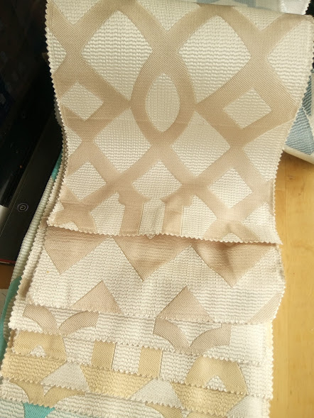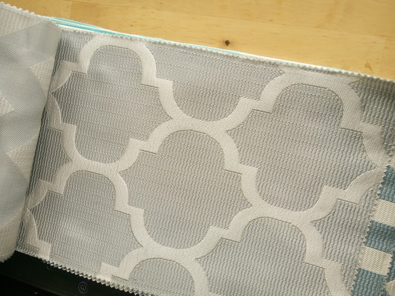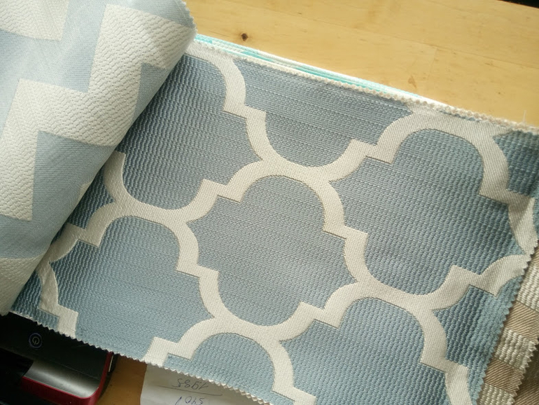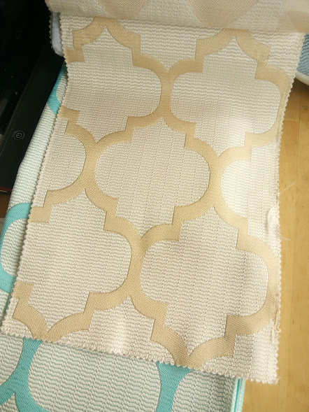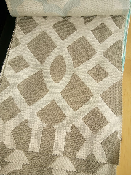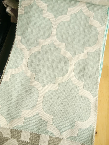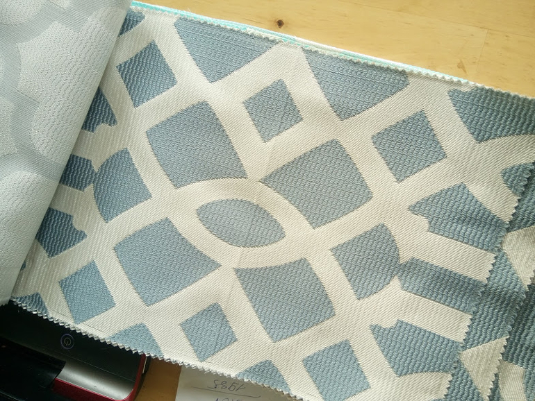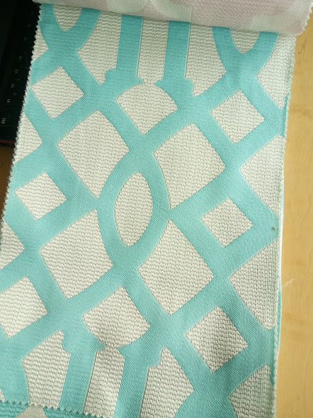Интересует ткань шеврон (бирюза или голубой). Фон у них желтоватый или белый в реальности?