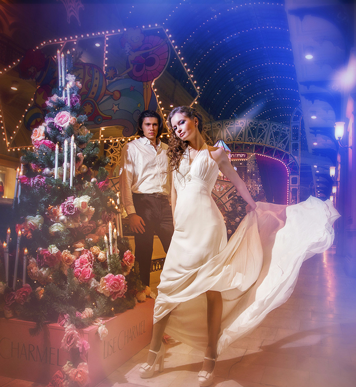 На днях снимали там свадьбу, сейчас очень красиво в Гуме!