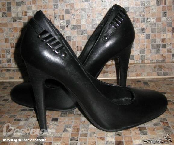 Продаю черные туфли на шпильке, классика, размер 35. Сбоку красивый декор. Туфли из искусственной кожи, высота каблука около 10 см.