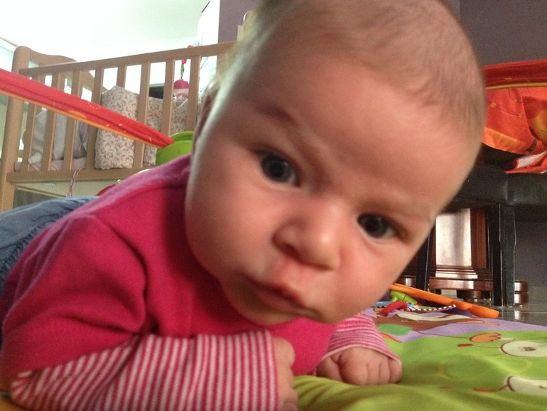 Ноа прибавила в весе 1150 гр, я соответственно убавила 5кг. Малышка спокойная и удобная. Я вылечила с ней все свои зубы. Была за этот раз пять раз у стоматолога а она спокойно спала в коляске. По утрам мы по 6 км гуляем быстрым шагом, она смотрит по сторонам или спит. Любит купаться и массаж. А я просто ее обажаю.