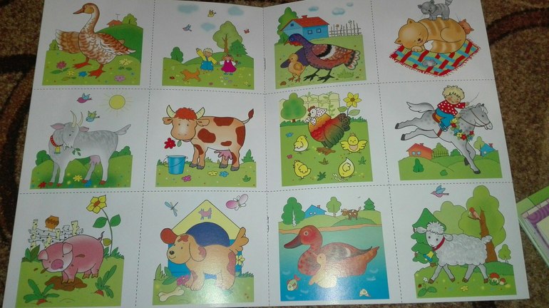 Картинки можно показывать в любой последовательности .Картинки яркие .Листы на удивление плотные,детским ручкам их не порвать.Моему сыну эта книга очень полюбилась.Ребенок с удовольствием рассматривал .Книжку пришлось разобрать по картинкам,что бы ребенку было удобно их рассматривать.Так же эти картинки я развешивала по квартире.