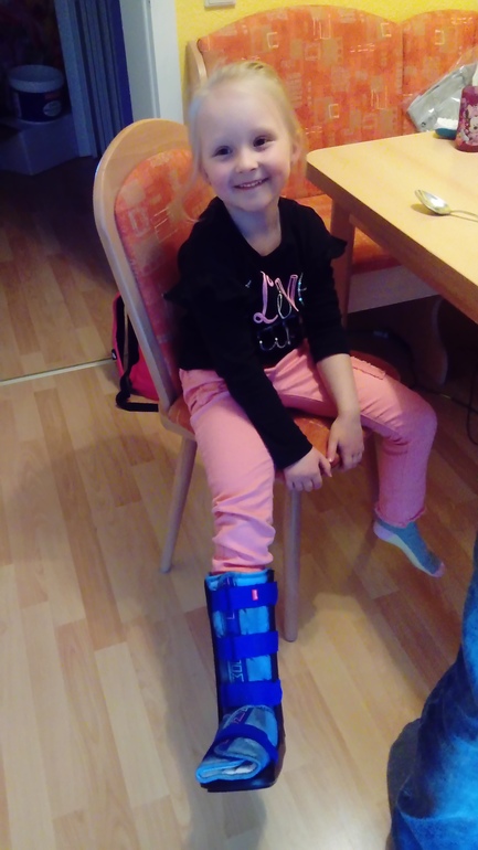 Хм... не знаю почему, но дети в основном находят такие штуки очень классными. Мой брат например был очень горд когда получил гипс. Тогда ему было 3 годика)) И моя вот тоже рада, слава богу не гипс! Будем теперь с мужем сидеть с ней дома по очереди.