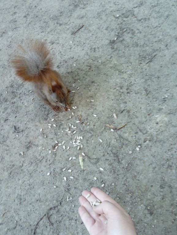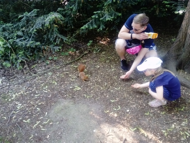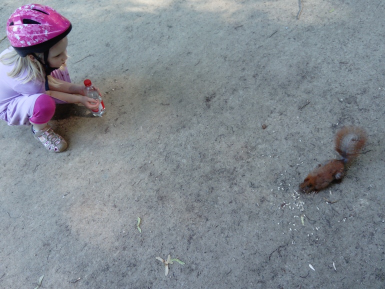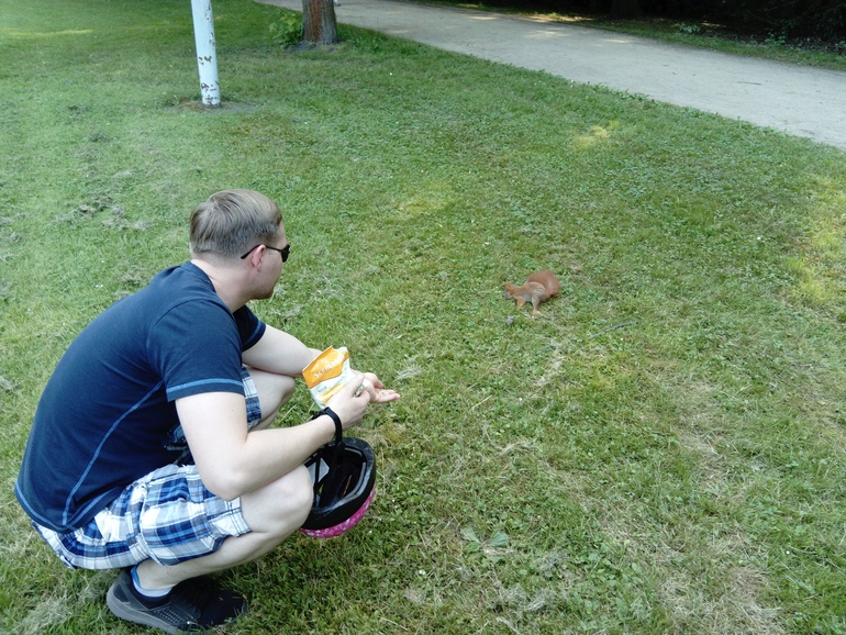 У нас в Дрездене есть больший парк Großen Garten. Там есть детские площадки, два озера - на обоих озёрах лебеди и утки, на одном можно кататься на лодках (проплываешь прям рядом с лебедями, они не боятся). На полянках можно загорать, устраивать пикники или просто собираться компаниями. А места для катания на роликах и/или ведосипеда очень много! Ещё по парку гоняет маленький поезд - дети пищат от восторга при виде него, а уж когда катаются то счастья полные штаны 😊 В парке есть одна забегаловка и рестораньчик. В центре замок, а вокруг него красота: деревья цветущие, цветы, ммм...😍 Короче бываем мы там редко, но метко. Вот "нарвались" на белок. Какие они классные! Подходят и едят с рук😍