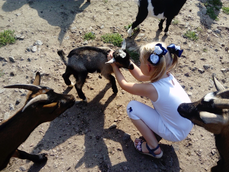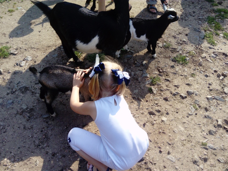 У Мелиссы явно какая-то невидимая саязь с козами и баранами😁 Они с ней ласкались, то есть давали себя наглаживать в то время как от нас шугались. Я это не про этих к которыми можно заходить, а про тех кого просто можно кормить, но не заходить.