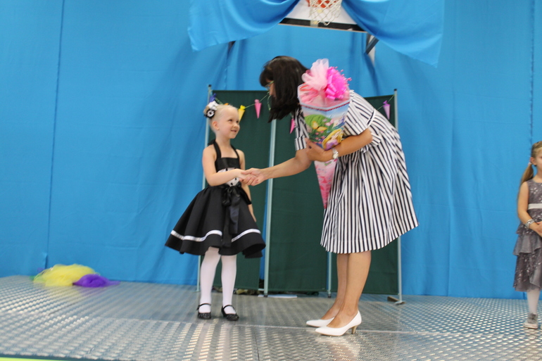 Каждый класс делал свою "линейку" отдельно. Мы в 1а, значит были самые первые. И так на самом деле лучше, чем когда толпень из всех первоклашек и их гостей.