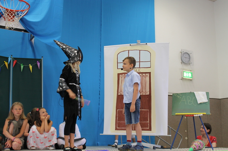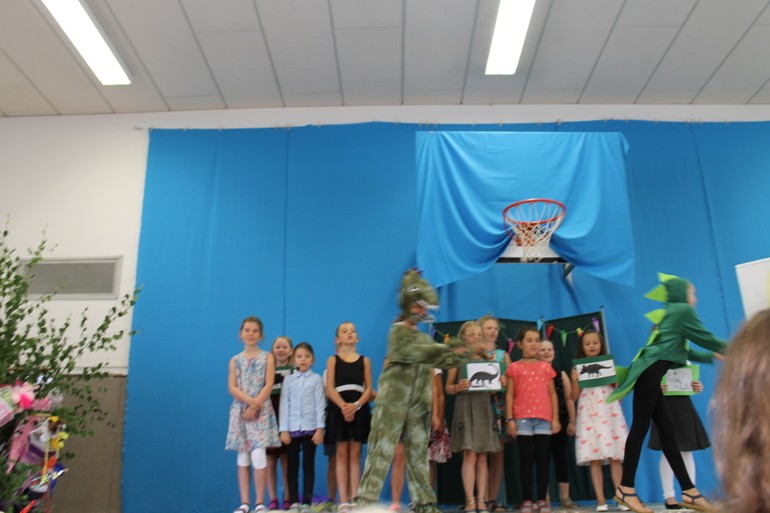 Когда дети уселись их поприветствовала директриса и третьеклассники показали программу на 30 минут. Было интересно, но под конец мне уже поднадоедать начало.