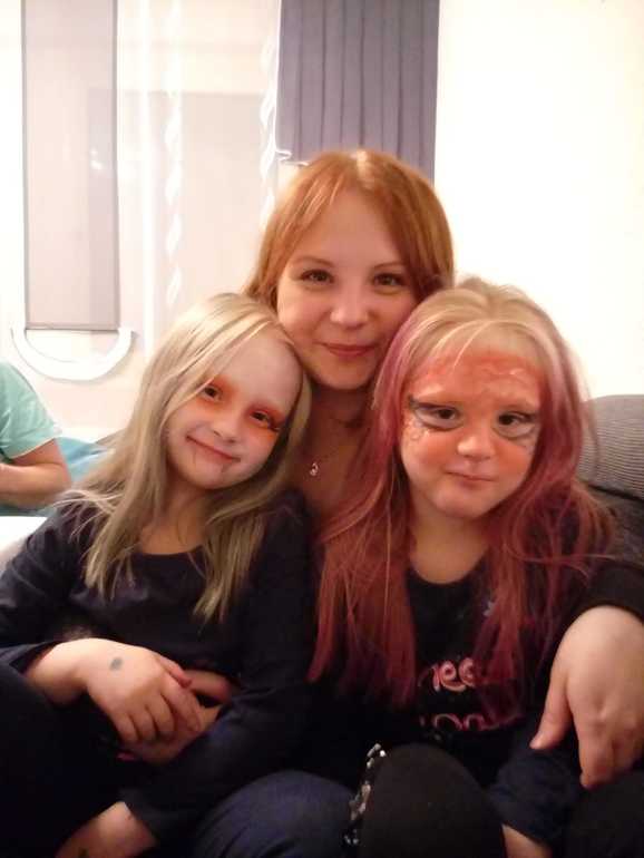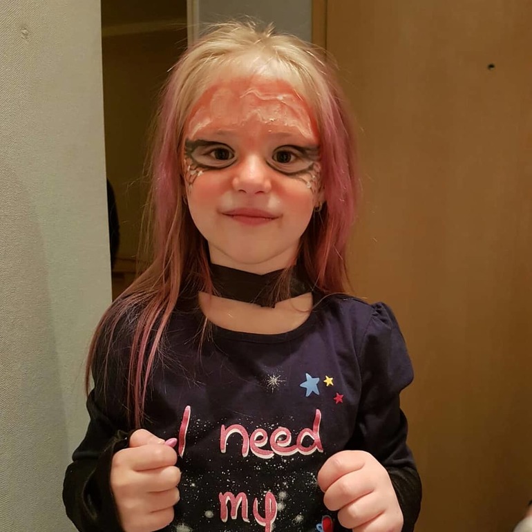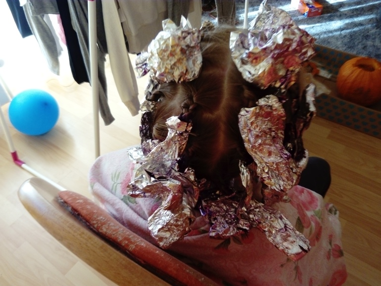 Да-да мы в этом году в первый раз наряжались и раскрашивались на Хеллоуин. И смотрят на моих детей могу точно сказать, что раньше им это не интересно было и я совсем не жалею что мы только в этом году решились. Конечно возни с приготовлением было много! Особенно если стараться выполнить требования детей, а это именно: я хочу лиловые волосы, а я хочу чёрные волосы!