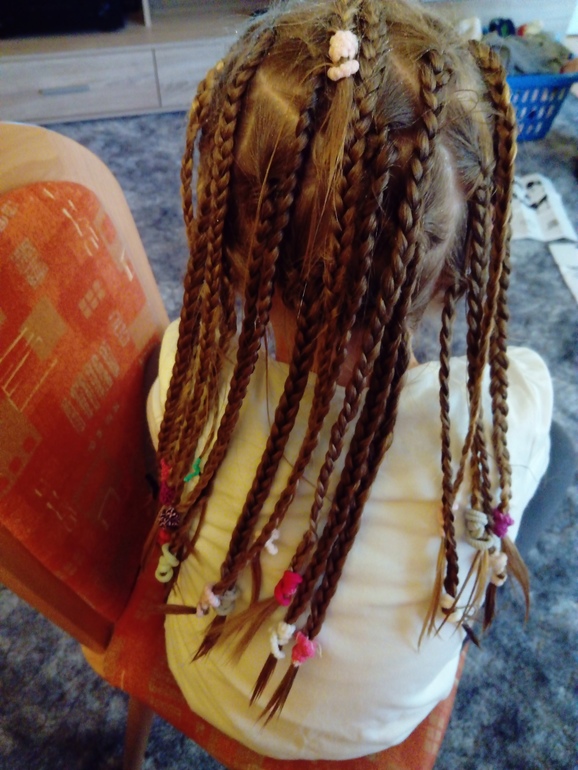 Мелисса температурила как обычно, отправила её спать и принялась за Мири. Сначала заплела косички:
