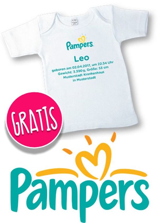Eine schöne Aktion von Pampers. Als Geburtstagsgeschenk für euer Baby, bekommt ihr ein Gratis Pampers T-Shirt, welches individuell mit dem Namen, Geburtsdatum, -stunde, -ort, Gewicht und Größe eures kleinen Lieblings bedruckt wird!