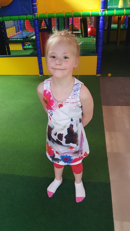 Кстати рост 114см, размер одежды 128, размер обуви 30, вес 21кг. Во всём почти догнала сестру. В этом году в фаворитах дневная фурия, единороги, лошади и Бэль. Всё так же спорит со мной, когда дело доходит до заплетания волос. Они по длине уже почти до попы. Продолжаем лечить синехию и грибок на ногах. Последнее почти победили. В садике у неё много друзей. Но почти все уйдут в школу в августе.