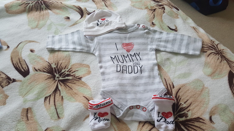 На ребенке будет смотреться примерно так (ну только без боди, слюнявчика и царапок):