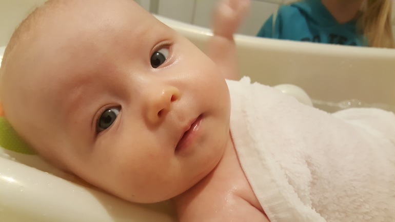 Сон днём не всегда долгий, а вот ночью спит не просыпаясь до 6 утра, кушает и ещё 3-4 часа спит. Вот сейчас я сглазила и снова будет кормление каждые три часа 24/7. Но вообще не могу не похвастаться, со всеми детьми как-то получалось и получается держать режим. Вот Полинка уже как месяца полтора поняла, что ночь это ночь. Обычно в 20-21 она уходит на ночной сон.