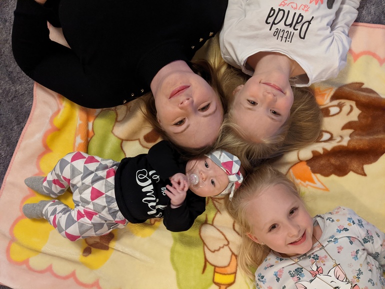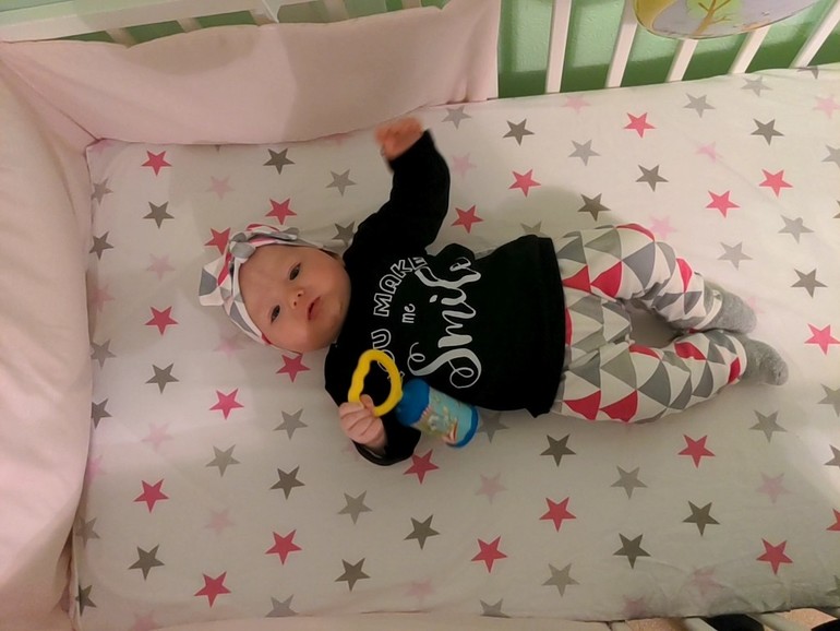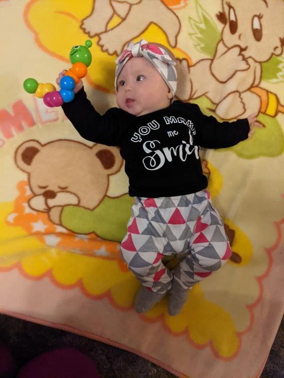 Полина, ПолинкаБоже куда ты время! Остановись! Вот только в роддоме была, а человеку уже 4 месяца.Растёт малышка, меняется. Уже почти месяц как научилась держать погремушки и грызть их. Буквально за день до 4 месяцев начался чёс дёсен. Грызёт соску иногда. Обезболивающий гель спасает не надолго. Хотя я вообще сомневаюсь, что он на дёснах задерживается.С того дня, как я заболела манюня перестала гулить и улыбаться. Ожила сегодня только, но и то не совсем. Почти не агукает, не разговаривает. Опять вернулись ночные кормления по 2 раза за ночь.Переворотов самостоятельных нету. Но зато есть попытки садиться 🤦 Если повернуть на правый бок, то на живот перевернется, с левым сложнее, там блокада.С сёстрами пока не очень складывается, она от них отворачивается, ручки выдёргивает. На расстоянии улыбается Мелиссе, а Мири для неё слишком шумная и резкая.В голос не смеётся, не удаётся её рассмешить.Научилась визжать 🙈 Визжит когда что-то не получается, например засунуть всю игрушку целиком в ротик.Ну собственно вот красотуля:
