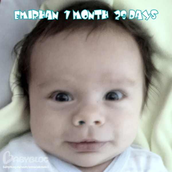Нам уже почти 2! Звуки произносит, улыбается, один раз смеялся, начал с интересом осматриваться по сторонам, узнаёт мой голос!!! Любит,когда с ним разговаривают, наблюдает за мобилем, но чаще всего любит смотреть на картины, купаемся раз в 2-3 дня, на ГВ, даю только масло укропа. Дала пол чайной ложки водички сегодня. Через пару дней прививка и контрольное посещение доктора, и УЗИ тазобедренных. Фото Эмира :)
