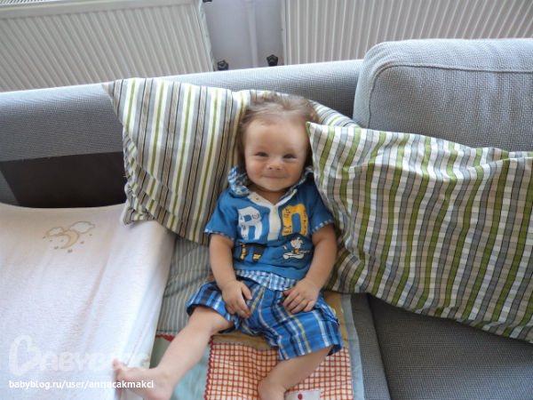 Эмир у Вас такой взрослый! Прям и не скажешь, что ему 5 месяцев. Наши ручки-ножки такие младенческие по сравнению с вами))).