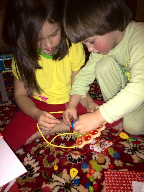 Пришла нам игрушка от HAPE с сайта Buzzaar. Очень качественная, сразу бросилось мне в глаза, упаковка красивая, даже внутри коробуи индивидуальный пакет. Игрушка не пахнет, не красится, все детальки очень гладкие, шнурки длинные. Мои детки сразу стали собирать ее, найдя инструкцию внутри с разнообразными схемами сборки.. Материал нвпмсано бамбук. Приятный на ощупь. На мой взгляд, игрушка очень хорошая. Мои детки, в силу характера, через пару дней уже не проявляют интерес к игрушке. Ребенку более младшего возраста она бы больше подошла. В наборе также было 5 наборов с игрушками, 3 с животными и 2 с колейдоскопом. Красивые. Отдала подругам -мамочкам, жду от них фотографий.