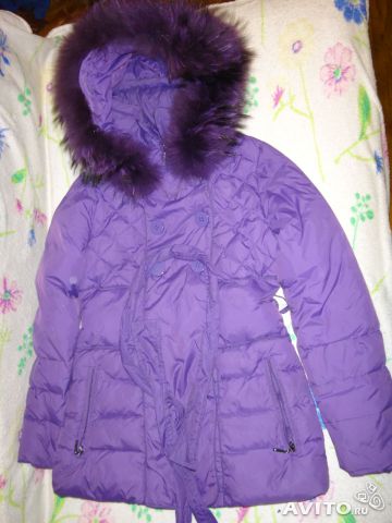 феолетовый с натуральным мехом на капюшоне, маркировка 44р состояние отличное, два пояса стоил 4тр продаю за 1000р