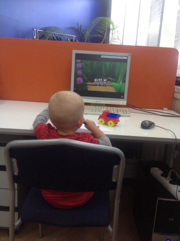 Самое забавное это, конечно, его крик из другой комнаты: Аня, дидадА! Аня, иди сюда)