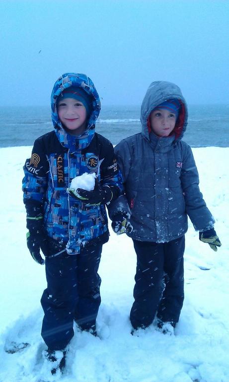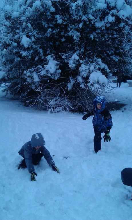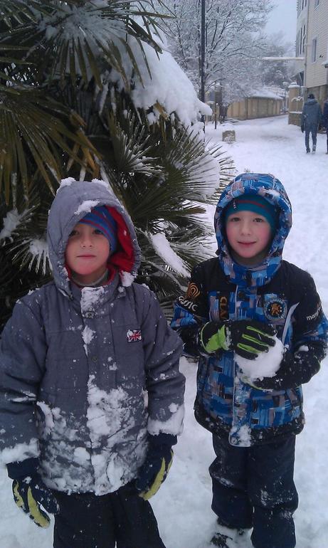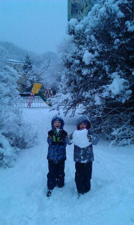 Снег "внизу" - явление редкое и краткое) Утро воскресенья началось с диких воплей, что все уже гуляют, а мама с папой мнут бока! И по фиг, что 7:00 ( лучше бы в сад так вставали). Завтракали быстро и без меню. На улице толпы помятых обломавшихся "поваляться в выходной" пап и мам, визжащие от восторга детишки. В итоге, конечно, счастливы все!