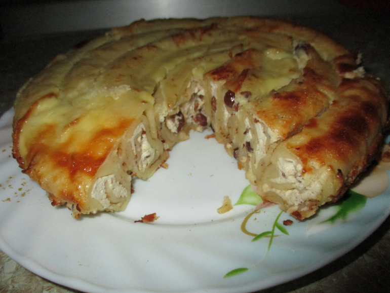 Запекаем в духовке. Готовый пирог смазала сметаной.