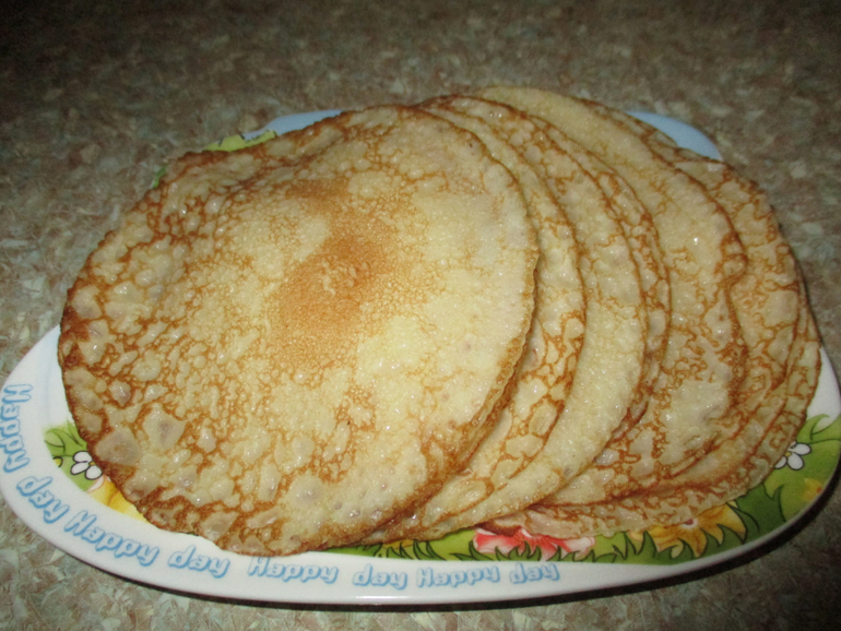 Ну а тесто для блинов стандартное- пеку по нему много лет.