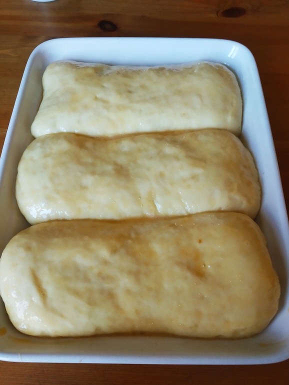 Выложить на противень, смазанный маслом или застеленный пергаментом, и оставить в тёплом месте на 20 минут.