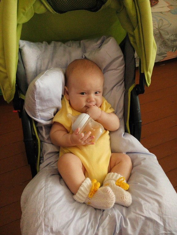 Мы пытаемся сесть (он в колсяке у меня полусидя находится, сидеть ему еще рано (он полулежа, полусидя там, пытается сесть),