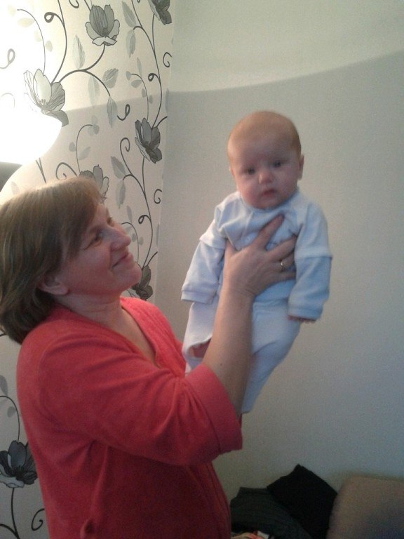 Это мы с бабушкой (моя мама). Саша вышел на работу, мы с малышом сблизились, стали общаться, он начал агукать. Взвешались в третий месяц 6300.
