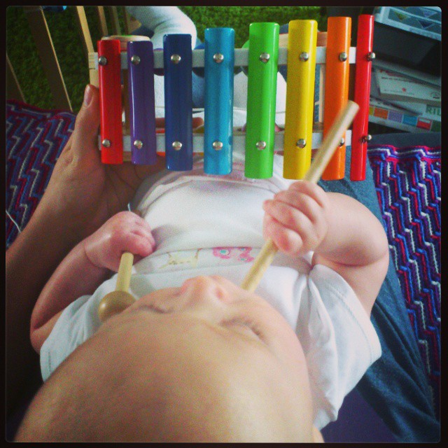 Я незнаю как ваш ребенок,но мой обожает лупить ладошками по поверхностям. В целом,мне нравятся игрушки из натуральных материалов,дерево,ткань.. Я не очень люблю те игрушки, куда вставляются батарейки,мне кажется они убивают фантазию. Но вот такого типа пианино исключение. Главные требования для нашего возраста это "мягкое" хождение клавиш и низенькая платформа,играем лежа на животике. Я заметила после этих игр дочка резко научилась опираться на одну руку,и приподниматься на вытянутых руках.