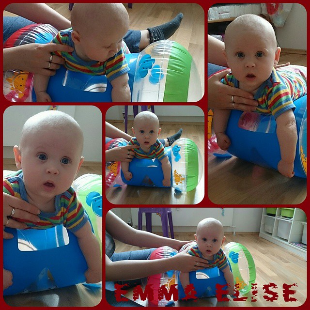 У нас есть еще специальная надувная штука,вобще она для обучения ползанью. Ползать конечно еще рано в 3-6месяцев,а вот равновесие тренировать эчень даже хорошо!!