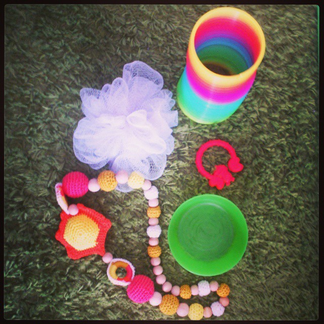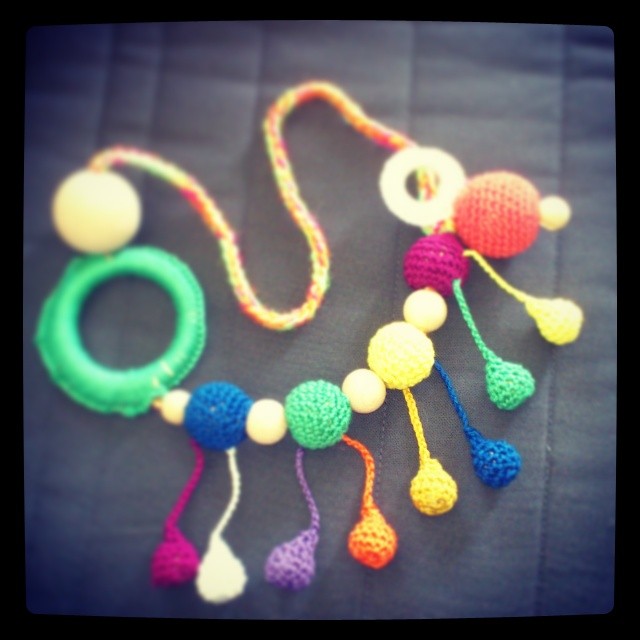 Очень полезная штука чтобы занять руки реенка и не только во время кормления. Я еще во время беременности навязала,вот наконец пригодились.