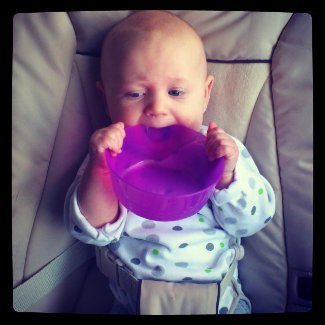 Всвязи с подготовкой к прикорму это очень актуально. Малыш знакомится с новыми для него предметами,ну и постучать чашкой классно.