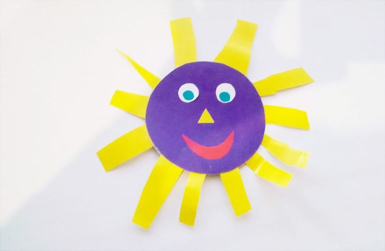 Настя сделала свою версию солнышка, пока я ужинала)) Я помогла только глазки наклеить, а запас кружков у нас всегда в наличии.