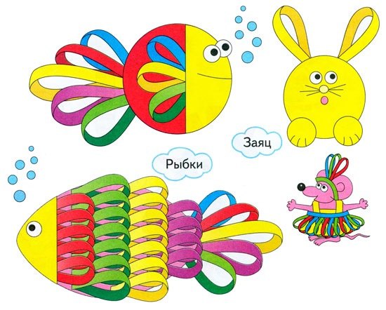 Но все равно сильно долго она за этим занятием сидеть не будет)). Поэтому если мы делаем поделки, полоски рисую заранее, какие-то запасные элементы тоже вырезаю заранее. Итак, что есть в опробованной нами подборке.