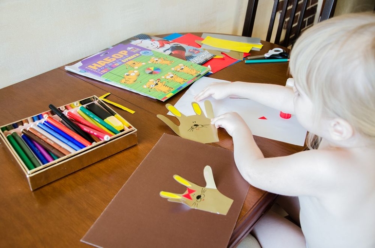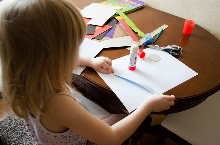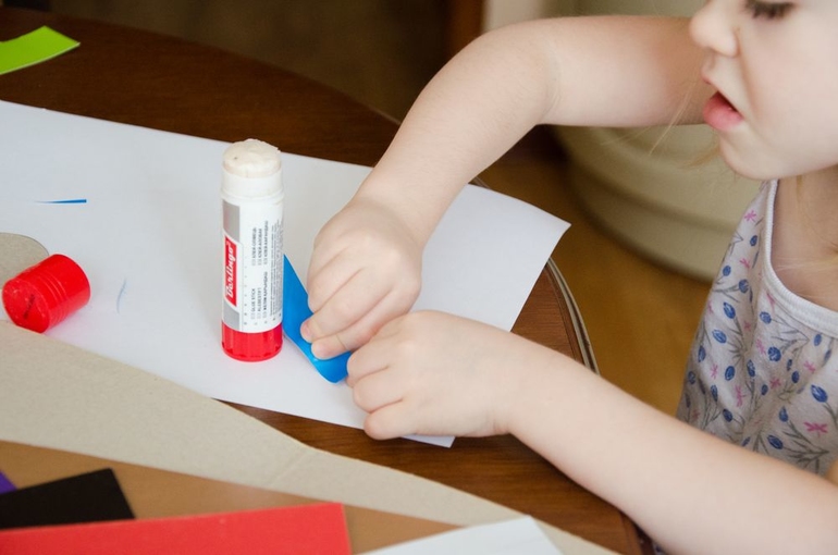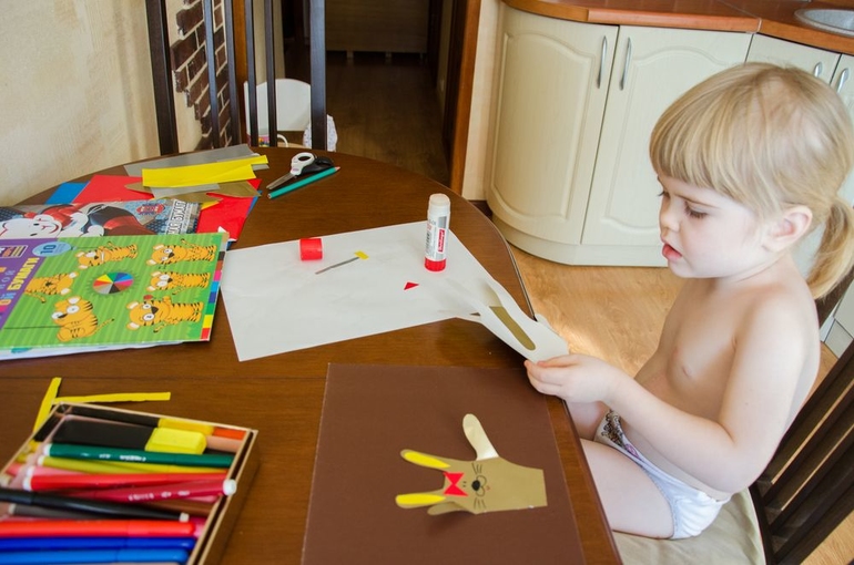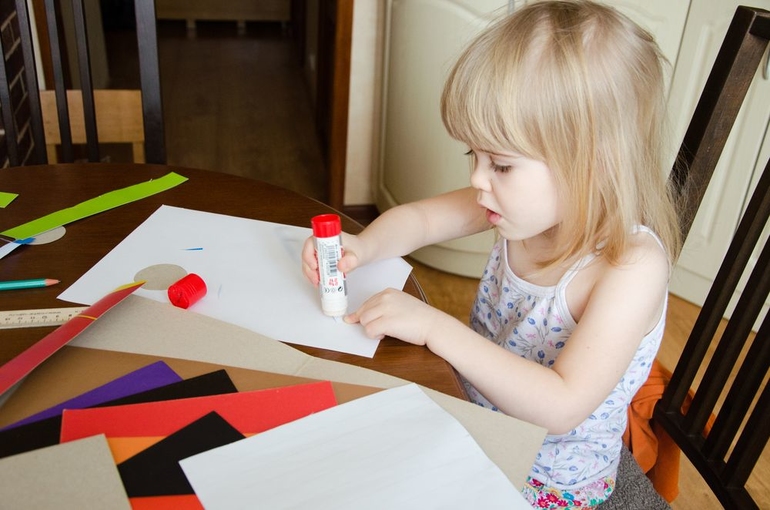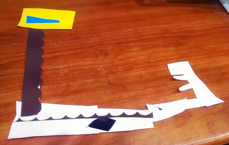 Настя очень любит проводить нарезку кусочков в произвольной форме. А потом и склеивать их по своему неведомому проекту. Вот например, одна из работ ее авторства - паровоз, который она переделала в корабль))
