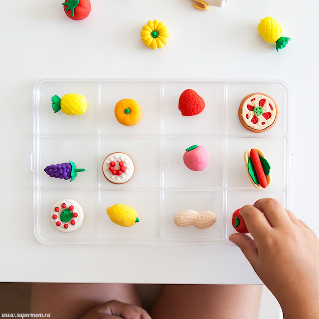 Лето - время игр и творчества. И занятий на развитие памяти, конечно, у нас было меньше обычного из-за регулярных поездок на дачу, в парки и на отдых, но тем не менее, по возможности я старалась не упускать время. Занятия летом были скорее поддерживающие, то есть мы не продвинулись в количестве запоминаемых карточек, ведь заниматься летом совершенно не хотелось. Поэтому я выкручивалась как могла, предлагая новые варианты старой доброй сетки памяти - не с карточками, а с реальными предметами, подсовывая их Алисе то как игру "Где чей домик?"...