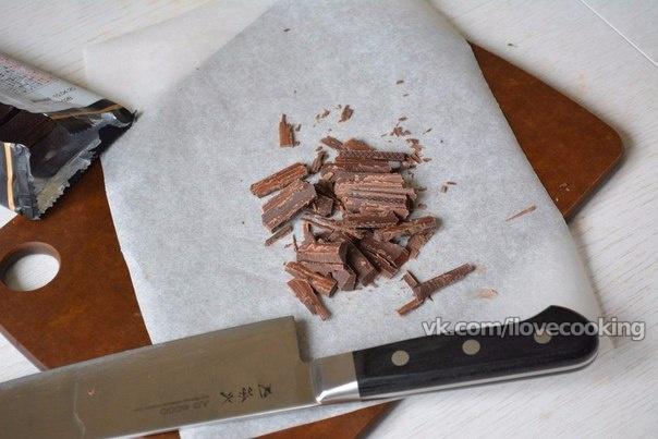 Шоколад мелко нарубаем, помещаем в плотный целлофановый пакет и растапливаем шоколад в микроволновке.