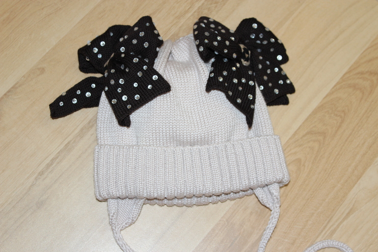Цветная шапочка на трикотажной подкладке, шерсть меринос 50 %, на завязках, фирма Daniil@ Daniela, размер 52-54