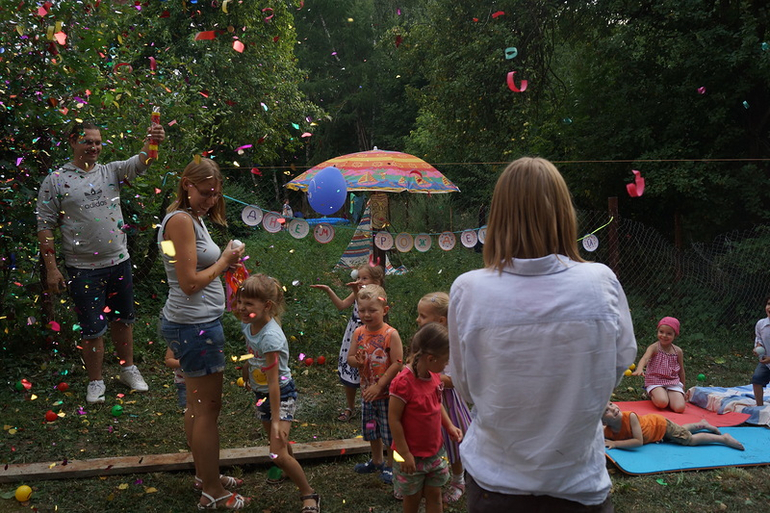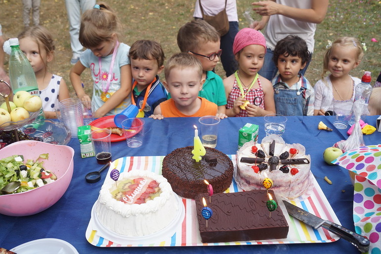Мне кажется что сам праздник прошел немного сумбурно. Детей было слишком много, часть из них разбегалась, часть не хотела играть и стеснялись, а сам именинник устал и под конец просто лежал. Ко всему прочему после всех игр я выяснила что Матвей с температурой да еще и с 38,5С. Вот так веселье. =)