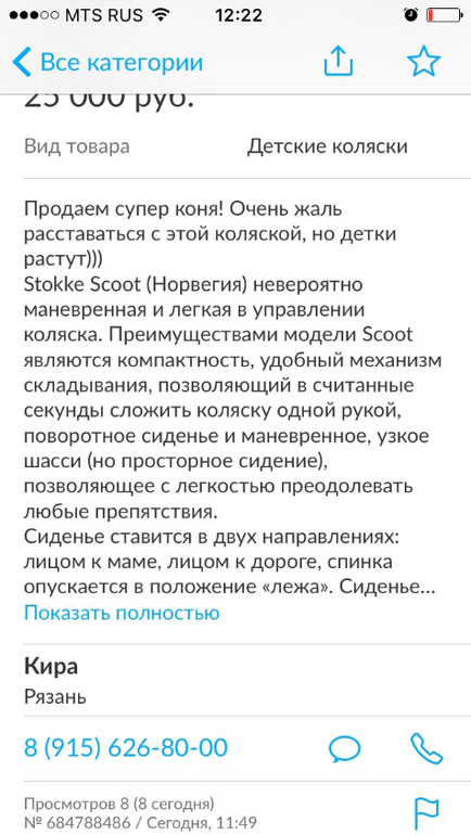 дорогие дамы...очень хочу вас предостеречь и предупредить в очередной раз...все мошенники сидят на тут..они даже это не скрывают,,что все читают,воруют фото,..и им совершенно не стыдно...я вас умоляю...просите дополнительные фото....фото паспорта и вещи...особенно регионы...они привыкли к лёгким деньгам...ведут себя так нагло...потому что их прикрывают очень хорошо и они ничего не боятся...все заявления теряются ...дела не возбуждаются...их много...куча карт и телефонов ..сидят и тут и на авито ....будьте внимательны!!!