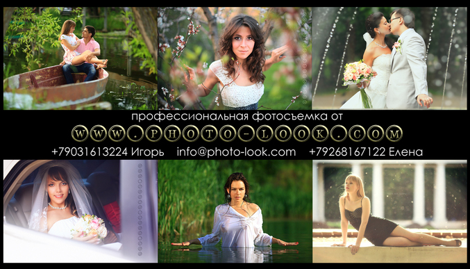 Здравствуйте! Рада представить Вам фото-проект www.Photo-Look.com , частью которого я и являюсь. Наш творческий коллектив готов предложить Вам разнообразные услуги в сфере фото. Свадебный фотограф, предсвадебная съемка, создание профессионального портфолио или фотопрогулка (на пленэре), в студии, семейная и детская фотография, Love Story, предметная съемка для сайтов и интернет - магазинов, создание фотографий и панорам интерьера, автомобили для каталогов. Ретушь фото, создание колажей, календарей и фотокниг. Стоимость услуг уточняйте по телефонам, пишите нам на почту info@photo-look.com или сюда в личку. Все самое интересное, акции, проекты и конкурсы на нашей странице в контакте.