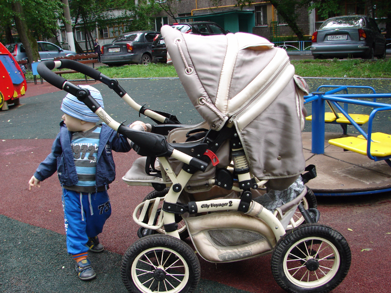 Обменяю коляску в очень хорошем состоянии. Цвет бежевый с золотисто - коричневым. В комплекте люлька переноска для самых маленьких+ дождевик+чехол для ног. Ручка перекидывается. Спальное место может быть как полностью вертикальным, так и подымается на 90 градусов. Капор отстегивается и под ним есть огромная москитная сетка, что удобно летом, ребенку не жарко и не проникают комары и пыль (на фото видно). На фото летний вариант коляски, т.е. снят чехол для ног, и т.к. у нас ребенок уже сидит, то убраны бортики для люльки - переноски. Отличная устойчивость и проходимость, что важно зимой.После одного ребенка. Пользовались год. Фото по запросу. В интернете от 10. 000р. Экв 5000 руб. Торг.